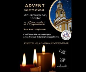 2023. december 2-án, az esti szentmisén a Páli Szent Vince Iskolaközpont diákjainak és tanárainak vezetésével meggyújtották az adventi koszorú első gyertyáját.