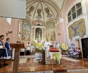 A szentmise végén újmisés áldásban részesültek a jelenlévő hívek, a templomból távozva szentképet kaptak ajándékba.