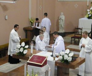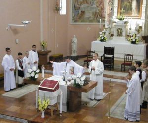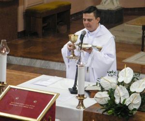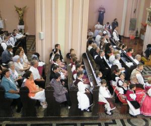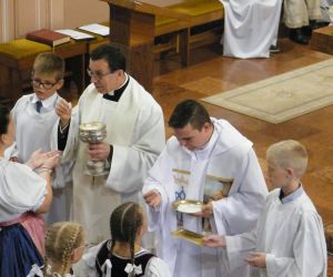 A szentmise végén újmisés áldásban részesültek a jelenlévő hívek, a templomból távozva szentképet kaptak ajándékba.