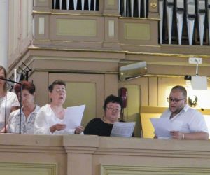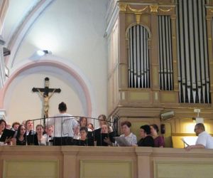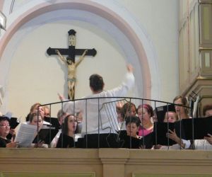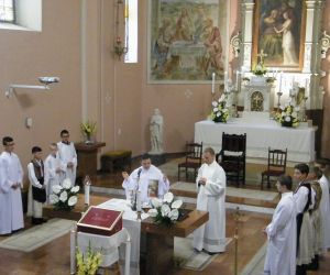 A Haydn Vegyeskar (Lukovits Györgyi és Titz Ildikó karnagyok vezényletével), az orgonán közreműködő Bognár Dávid zenei szolgálata emelte a liturgia áhítatát. Műsorukban elhangzott: Young: Alleluja; Wilhelm Troschel:Ave Maria; Horváth Márton Levente : O salutaris hostia; Palestrina: Jesu rex admirabilis (Jézus a király) (Bognár Dávid, Lukovits Györgyi és Titz Ildikó triója); „Az Úr vezessen végig az úton” kezdetű ősi ír áldás, melynek kicsengése: bárhova megyünk, mindig az Úr vezet, s szeretteinket. Az Úr szent keze őriz minket mindenkor, ha nem is látjuk.